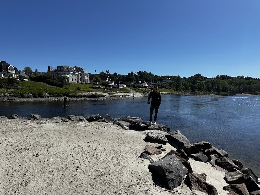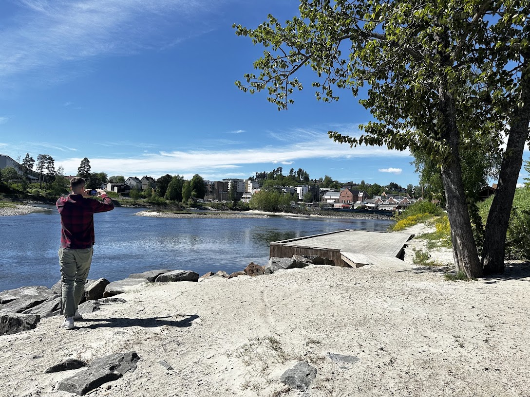 16.mai 2025 tok Christian turen fra Drammen til Hønefoss, vi hadde et hyggelig møte hvor Christian presenterte ideen, deretter tok vi turen sammen langs elven for å se på mulige plasseringer. En badstue ved fossen er nemlig noe vi har ønsket oss i Hønefoss i flere år. Ikke bare fordi det vil gi en helt spesiell naturopplevelse midt i byen, men også fordi badstuer ofte utvikler seg til uformelle og hyggelige møteplasser for folk.
