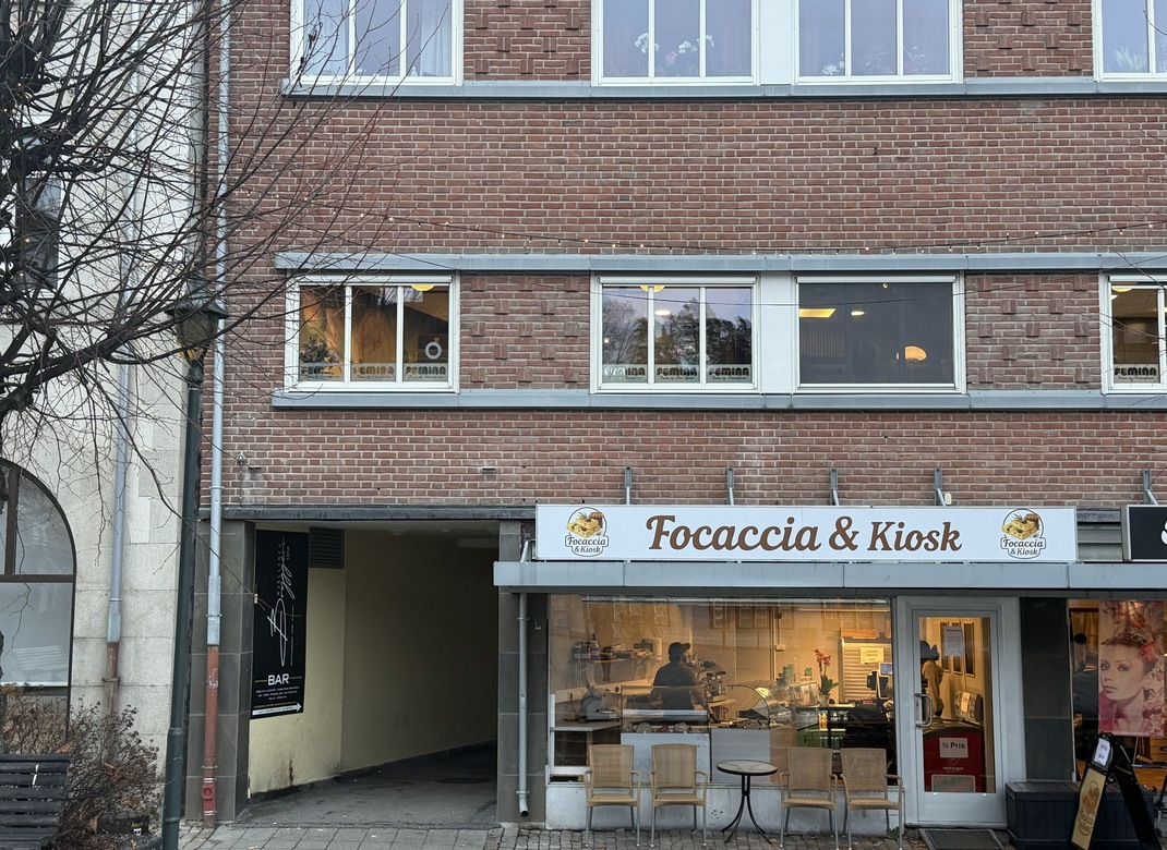 Kiosken holder til på bakkeplan i Bryggerigården med adresse Søndre Torv 2B, i lokalene hvor kiosken Kremmerhuset holdt til tidligere. Her tilbys nystekte, deilige sandwicher laget på focaccia – saftig og gyllenbrun – fylt med friske, velsmakende råvarer og omtanke i hver bit.